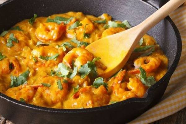 - Añadir las gambas y la mitad del cilantro y calentar durante 2 minutos.