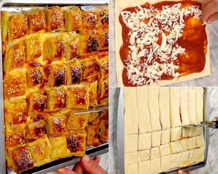 Los cuadrados de hojaldre son un entrante o aperitivo sabroso y fácil de preparar. Consisten en crujientes cuadrados de hojaldre cubiertos con queso rallado, jamón, verduras u otros ingredientes de tu elección, y horneados hasta que estén dorados y fundentes.
