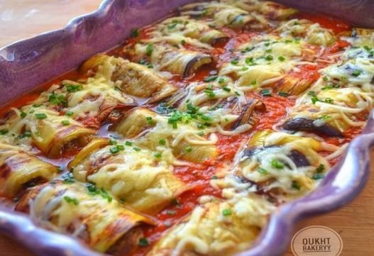 - Colocar los rollitos de berenjena sobre la marcha en una fuente para gratinar.