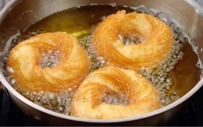 - Hornear cada rosquilla en el aceite precalentado durante 3-4 minutos o hasta que estén doradas por ambos lados.