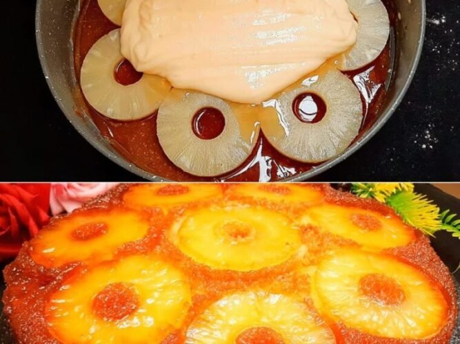 Esta es una receta de tarta de piña superior, también conocida como tarta de piña invertida. Esta tarta es deliciosamente húmeda y está rellena de piña caramelizada. Descubra cómo hacerla aquí: