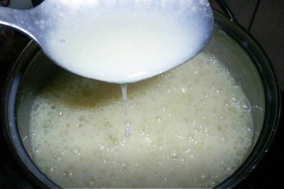 Aumenta el fuego, continúa cocinando y no olvides seguir revolviendo. Si la mezcla comienza a burbujear demasiado, baja el fuego lentamente. Después de que la mezcla de leche hierva, déjala hervir exactamente 10 minutos.