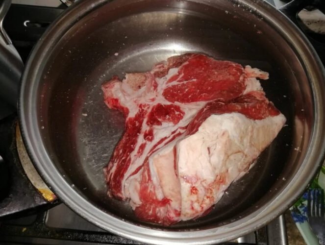 - Después de 10 minutos, notará que la carne se vuelve considerablemente más suave y fácil de cortar en porciones más pequeñas.
