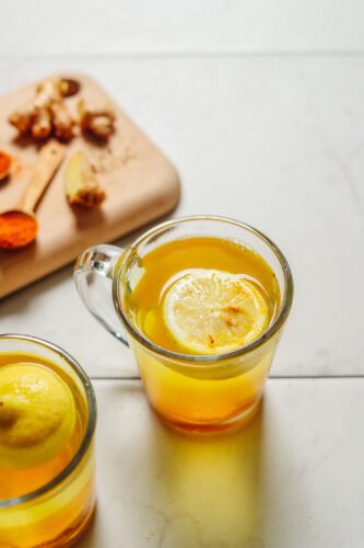 2. Después de que se enfríe, retira las rodajas de jengibre y agrega el jugo de limón.