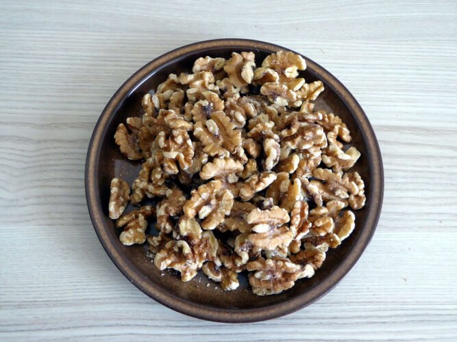 - Nueces: Conocidas por ser un remedio popular para la salud del corazón, los huesos y el sistema nervioso. La combinación de nueces y miel contiene vitamina E, así como las vitaminas B1 y B2.
