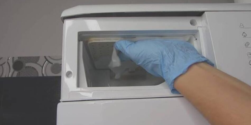 - Utiliza toallas de papel para limpiar el interior de la lavadora detrás del compartimiento del detergente.
