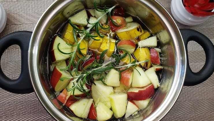 Para preparar esta infusión, simplemente pela y corta una manzana en trozos, limpia las hojas de romero y agrégalas a una olla con agua hirviendo. Deja que la mezcla se enfríe, luego vierte el líquido en una taza y comienza a beber.